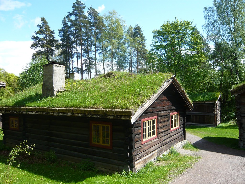 Small wooden house with a green roof